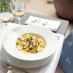 Bij dit hotel kan men ontbijten, er wordt namelijk een continentaal opgediend. Het à-la-carterestaurant is gespecialiseerd in de internationale keuken en biedt uitzicht op de zee. Marina is vrij dicht bij Mariana Pansion & Restaurant dat Kroatische gerechten serveert.